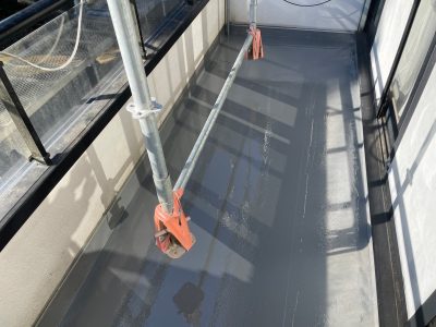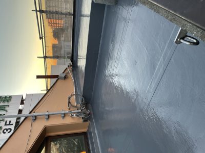 ハウスメーカーなどで使われるベランダのシート防水を専用塗料で防水塗装しました。防水性能の確保と美観が保たれるのでメンテナンスをお勧めします。します。