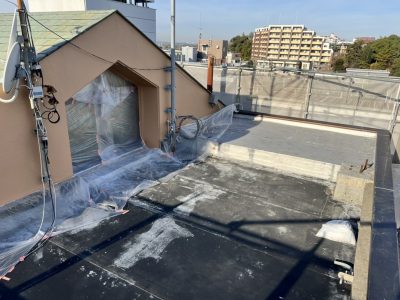 屋上防水塗装を行いました。メンテナンスを疎かにすると雨漏り等の原因になります。早めに塗装することをお勧めします。